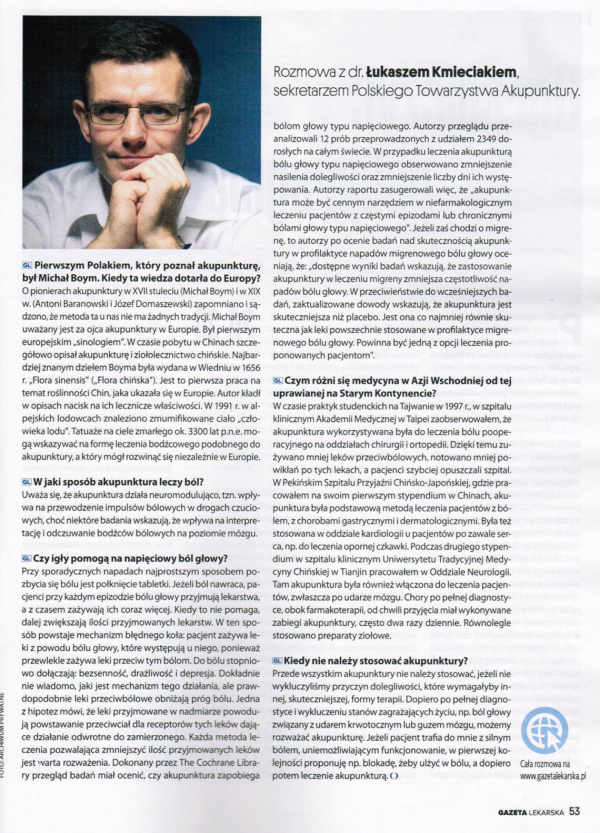Jaką historię skrywa akupunktura? O różnicach w stosowaniu tej metody w Europie, a w Azji Wschodniej, opowiadałem w rozmowie z Gazetą Lekarską.